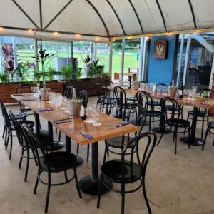Our welcoming and lively indoor Bar area is perfect for a fun gathering or just a catch up with friends. The round barrel tables allow for a flexible layout to suit your group. Tv for sport and fully airconditioned great for finger food, cocktails or cold drinks.